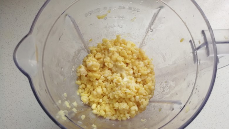 4. 然后把蒸好的绿豆放入料理机中,加入一百克牛奶,搅打过程中如果太干,可以适量加入一点点清水。