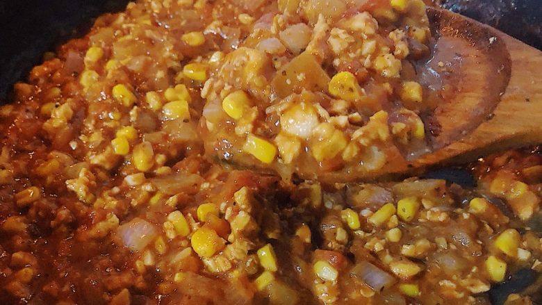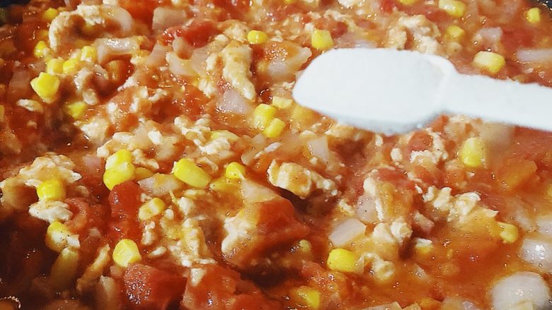18. 炒好的番茄肉酱放入烤盘或烤碗内。