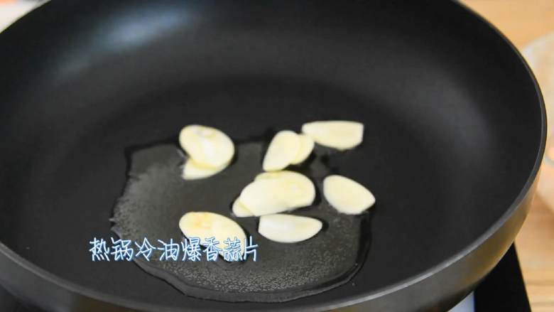 5. 热锅冷油爆香蒜片。