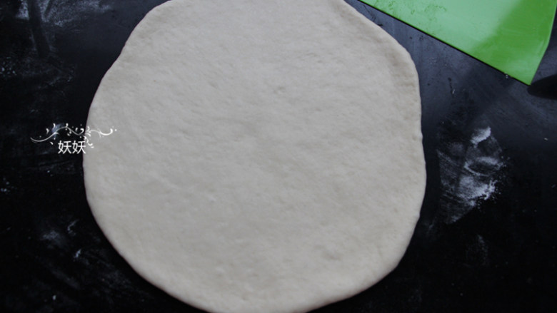 5. 把发酵好的面团取出排气,擀成扁平的圆形。