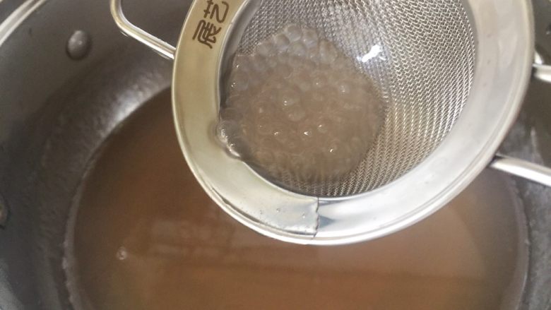 6. 事先准备一碗凉白开,冰的最最好,把煮好的西米全部放进去,然后放在一边等它冷却