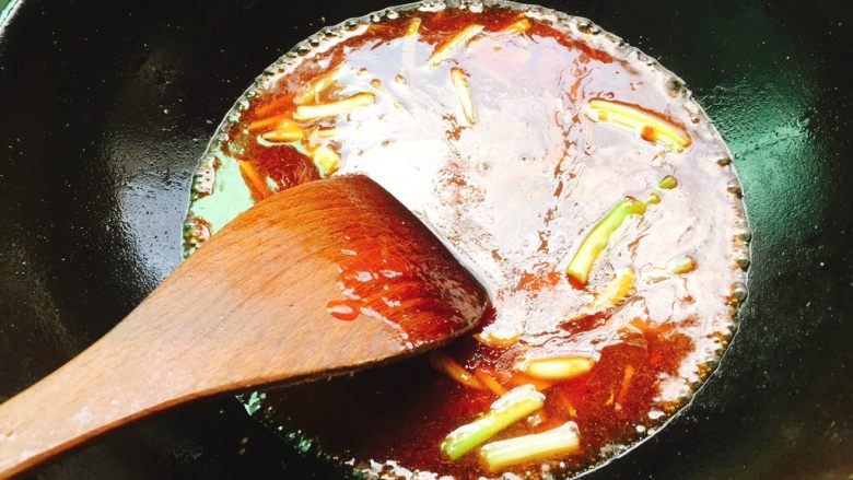 13. 利用勺子将调汁均匀的淋在鱼身上