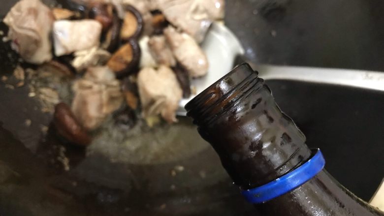 9. 加入二分之一的姜片,加适量料酒