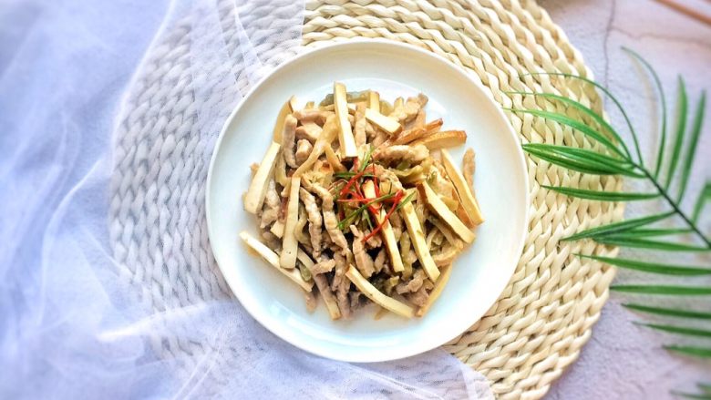 13. 撒几条青椒丝和红椒丝点缀一下……