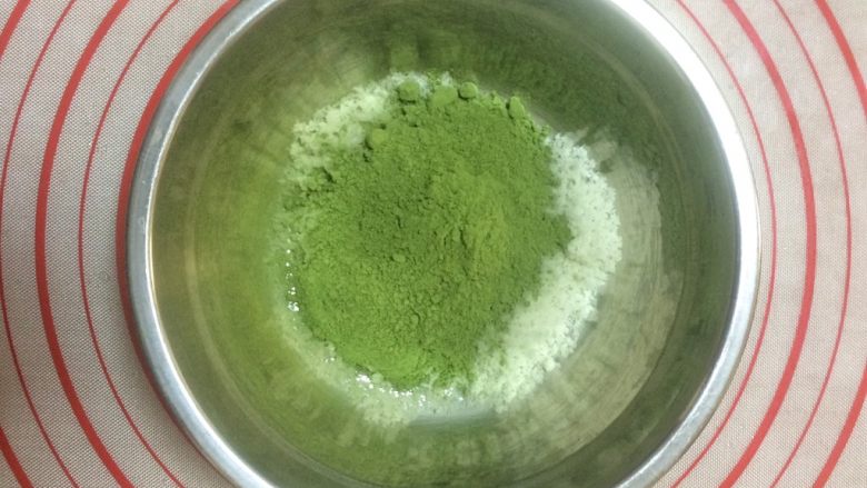 2. 糖粉与抹茶粉混合均匀。