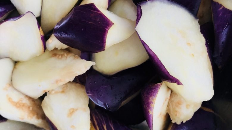 私房肉沫茄子,快熟的茄子沥油,装入盘子中备用。