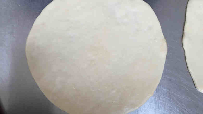 3. 在案板上抹油,擀成薄薄的面饼,再醒十五分钟。