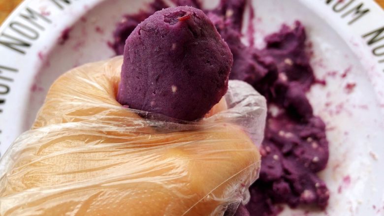 3. 蒸熟的紫薯稍微晾凉。