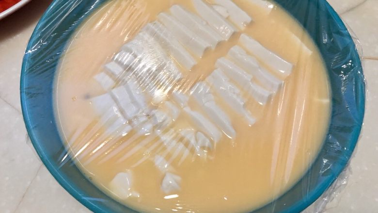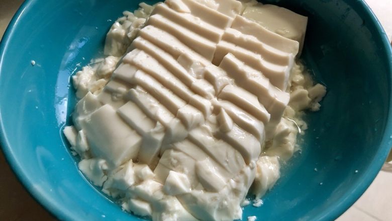 12. 内脂豆腐去包装倒扣在盆中,今天不小心,结果碎了几块😛