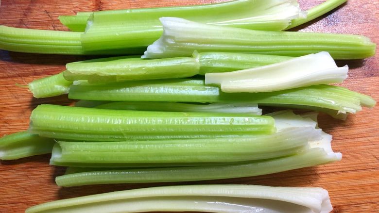 - 西芹用刀刮掉表面的丝,炒出来会比较嫩,百合和西芹焯一下水,炒出来会特别脆爽,特别好吃。