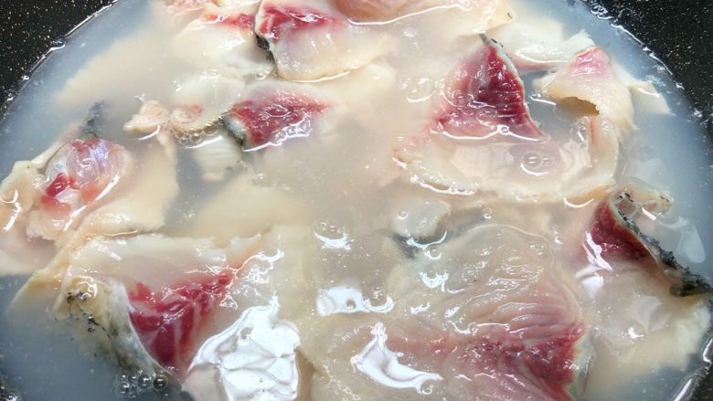 13. 换一锅水重新烧开,放入鱼头鱼骨焯熟