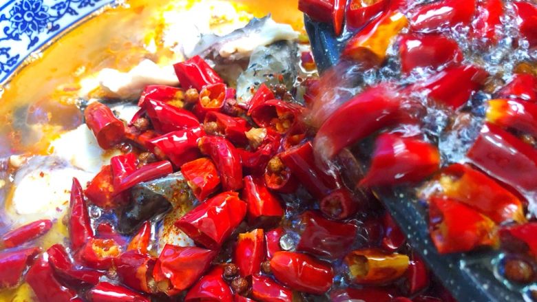 所谓的沸腾鱼就是把鱼煮好,最后把辣椒炒香,再把辣椒和油一起浇到鱼肉上,让鱼肉沸腾,发出次啦次啦的声音!