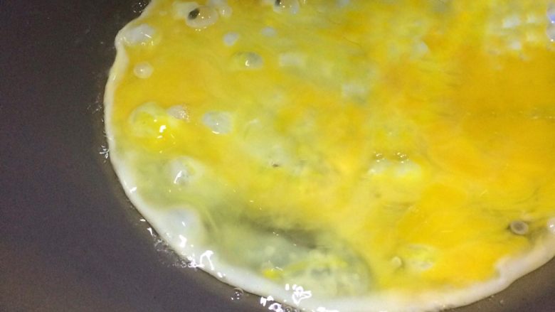 4. 锅里放适量油加热,倒入鸡蛋液,摊成饼状。