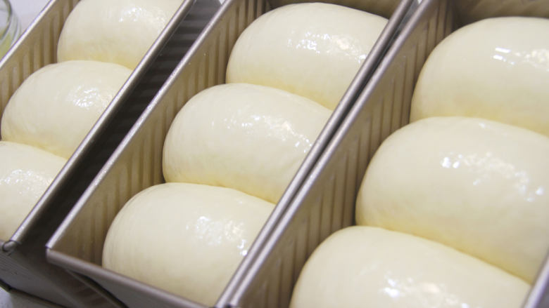 14. 卡士CO-960M选择发酵程序,温度设置35到38度,进炉喷蒸汽一次,中途再喷一次,面团放入发酵至约吐司盒7分满。