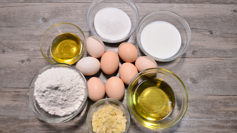 绵密的蛋糕体,基础戚风蛋糕+蜂蜜+杏仁的组合,软绵香脆!