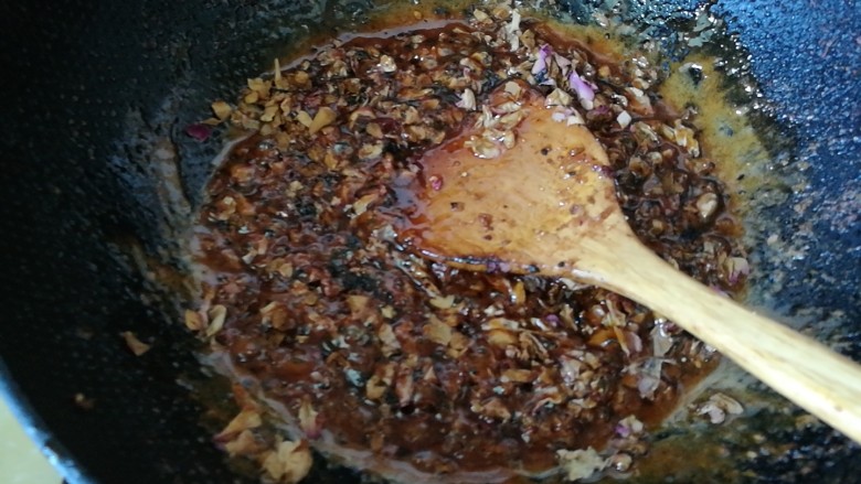 13. 倒入红枣玫瑰翻炒,加入红糖、黄芪黄精浆、麦芽糖,大火烧开小火熬制二十分钟。