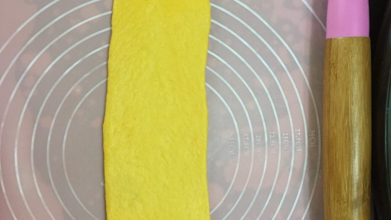8. 刷上沙拉酱,放入肉松,将面团由上而下地卷起