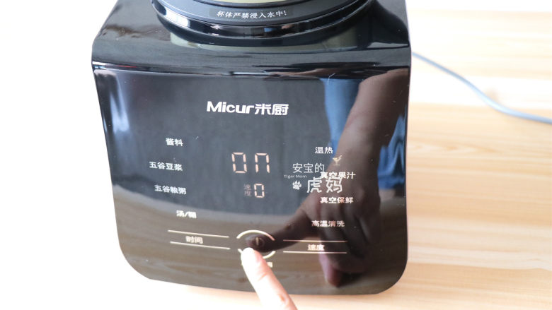 8. 再按一下启动键,破壁机开始搅打,瞬间就打好了,关掉电源即可,不用等到程序结束。如果暂时不喝就不要开盖,这样在真空环境下不会被氧化变色,喝的时候加入冰块即可;