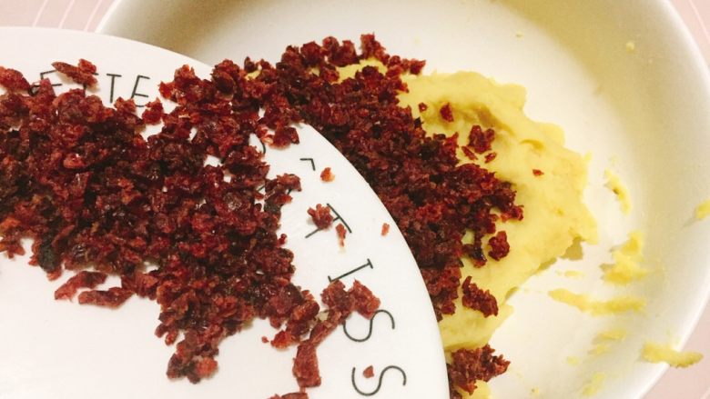 7. 倒入大盆里加入细砂糖,趁热压成泥状,也可以借用料理机打成泥。