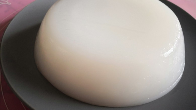 5. 水烧开后开小火,倒入调好的碗豆粉水,开始顺着一个方向搅拌均匀,搅打至有些劲的时候关火,倒入抹油的容器中,室温凝固即可,也可以冰箱冷藏。