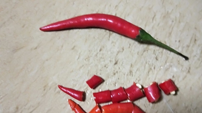 3. 朝天椒2-3根,洗净,去掉头部,切粒。