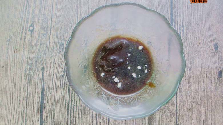 7. 将酱油,蚝油,白糖,盐、鸡粉、少许水放入碗内混合,放入微波炉叮一下,或者倒入小奶锅里煮开
