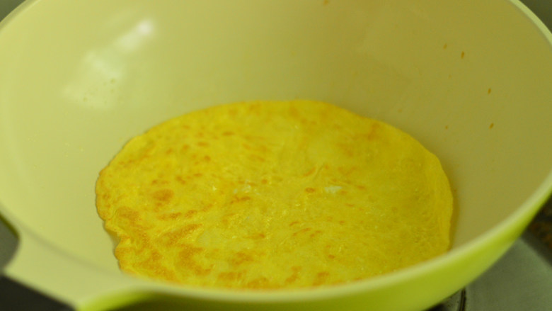 5. 锅里倒入少许油,倒入鸡蛋液,摊成蛋饼
