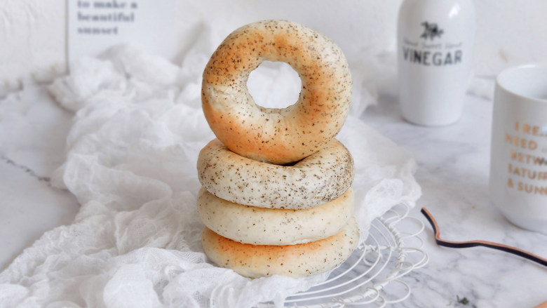 11. 发酵好的贝果取出,就发酵成胖一圈就可以了,去预热烤箱吧。200度