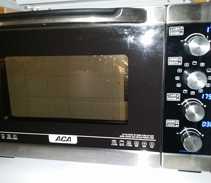 14. 送入预热好的烤箱中层:175度上下火烤,上色后可加盖张锡纸防止烤糊