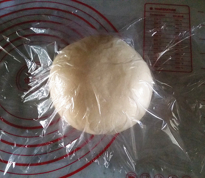 6. 从面包桶中取出面团整理搓圆,盖上保鲜膜静置30分钟