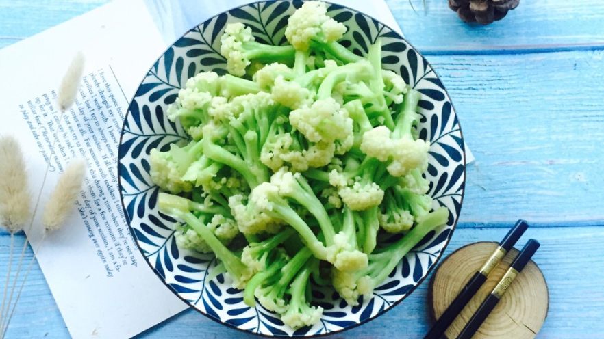 1. 将花菜掰成小朵放在水里加一茶匙盐浸泡15分钟