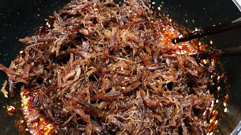 17. 翻炒均匀就可以啦,等放凉后就可以吃啦 麻辣鲜香带甜味,牛肉丝有嚼劲,追剧最好的零食啦