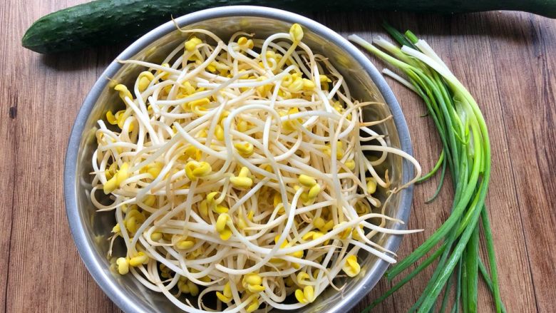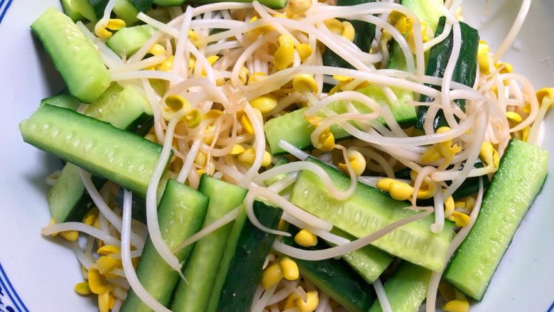 9. 黄瓜和豆芽焯好水捞起来放入碗底