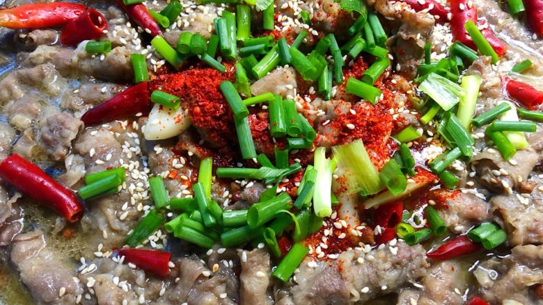 17. 撒上3g辣椒粉,3g白芝麻,少许葱叶