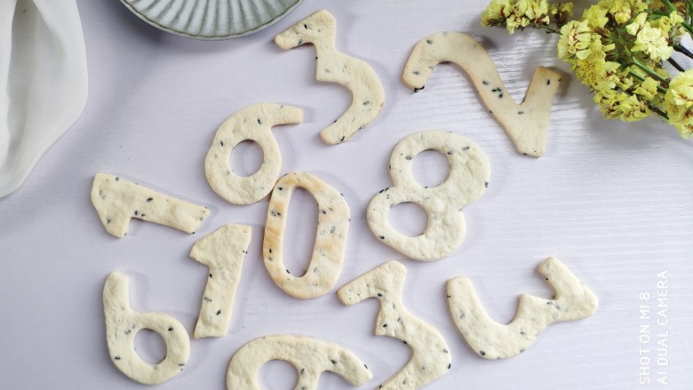 5. 用数字模具压成数字饼干,入烤箱,上下火150度30分钟即可,各家烤箱温度不同,根据自家烤箱调整温度和时间