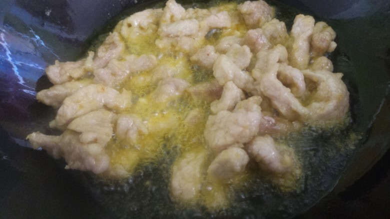 14. 把里脊炸至金黄。捞出来再复炸一遍。