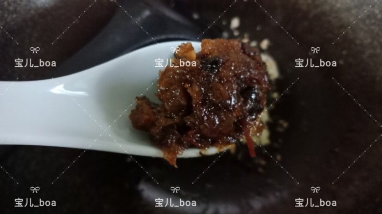 6. 另起锅,放入适量油烧热,开小火,加入蒜蓉爆香
