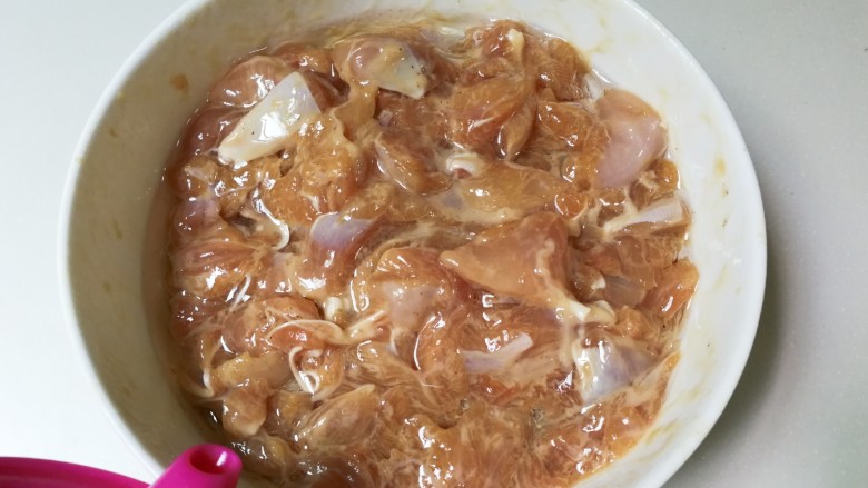 鸡腿肉比鸡脯肉嫩滑,经过作料腌制,放入洋葱,青椒炒,一口一个鸡腿丁吃不够。