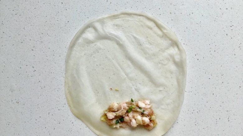 11. 末端蘸水抹春卷皮上收口,炸的时候就不会开口哦!
