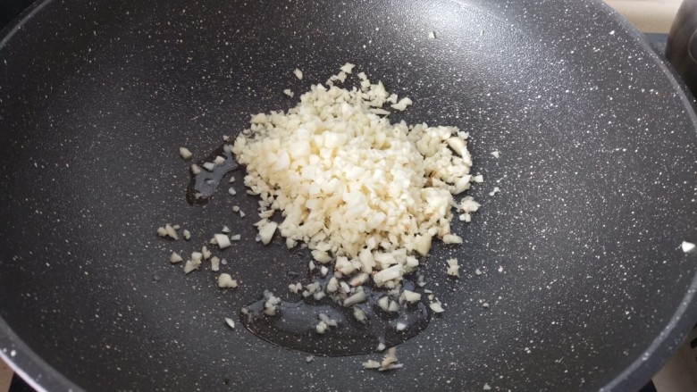 8. 放入蒜蓉炒香