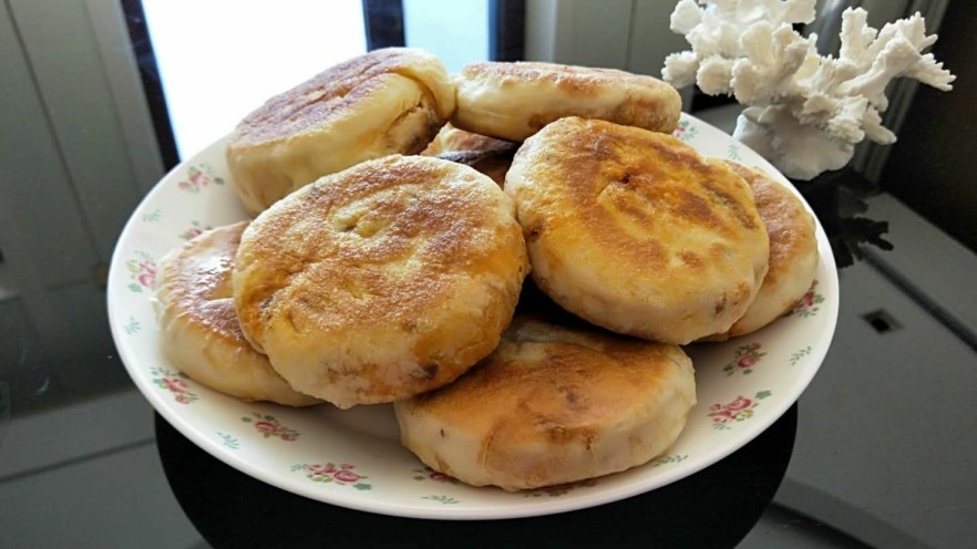 6. 赶薄撒上食用油,盐面,五香粉,自然粉,花椒粉