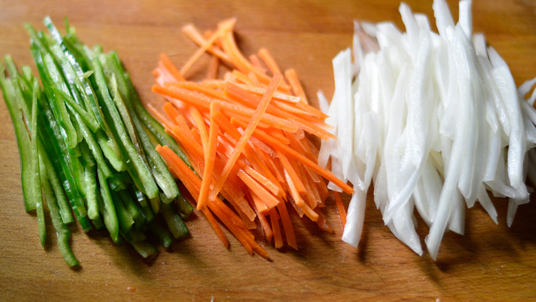1. 牛肉逆着纹路切丝