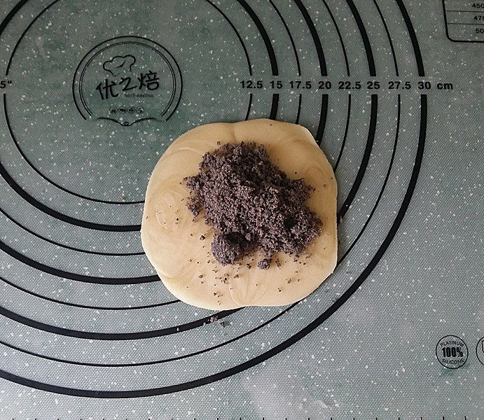 14. 用擀面仗擀平放上黑芝麻核桃桑茸馅