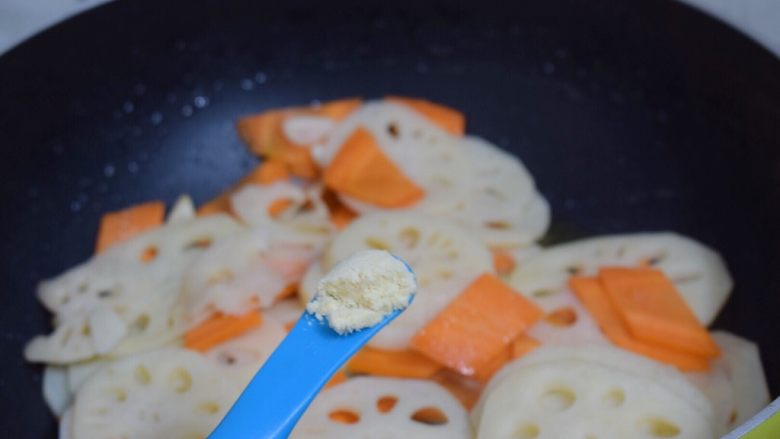 2. 莲藕洗净切成薄片,放入白醋水浸泡,防止氧化变黑