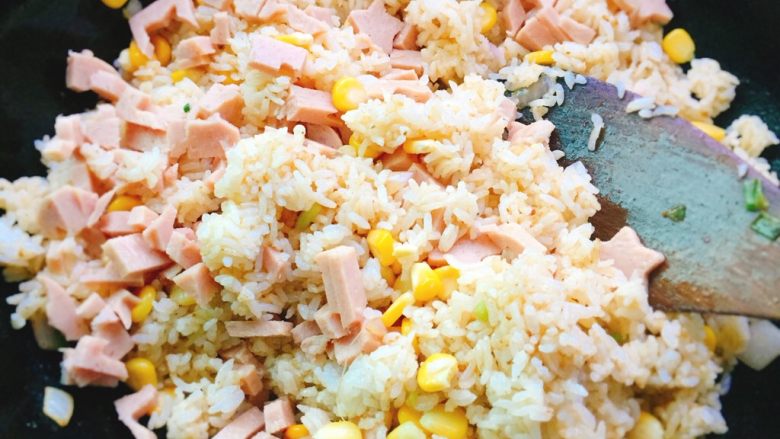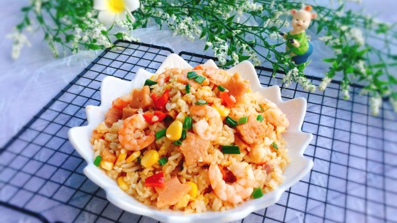这个炒饭,我简单地称做「懒人炒饭」,不想炒菜时就这样炒上一盘,材料也很普遍易做入味,午餐肉鲜虾和鸡蛋crossover味道是绝对的惊喜。相信你也会就爱上!