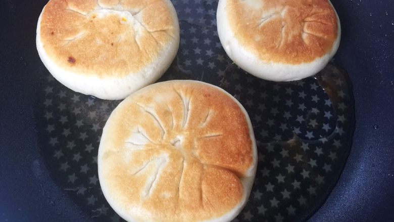 18. 锅里放油,封口的底部朝下,馅饼入锅
