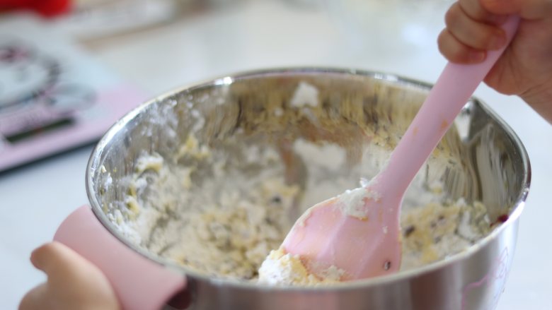 12. 用刮刀辅助搅匀到不见干粉就可以了,不需要过度的搅拌。