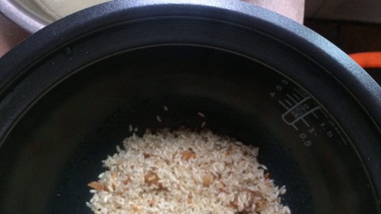 5. 放入电饭锅,用鸡汤水来煮饭。