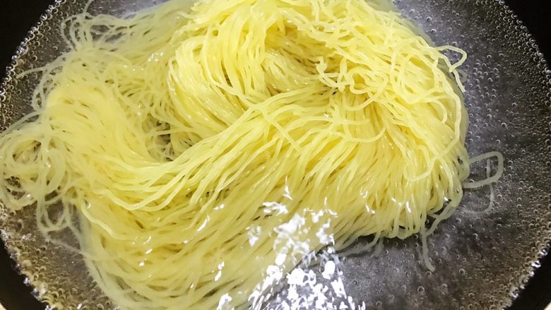 13. 捞出面,马上过凉水,直到面条温度降下来后捞出沥干水