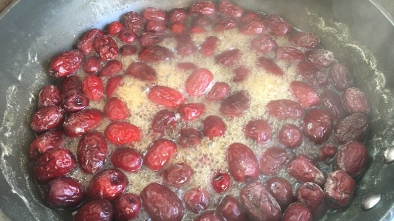 2. 1500g水与红枣加入锅里中火加热煮1小时